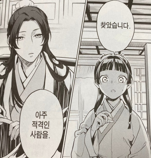 - 주인공: 마오마오 – 유곽 출신의 약사 소녀로, 독과 약에 해박한 지식을 지님